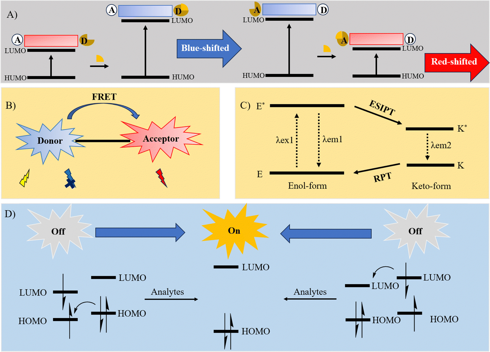 | 59 | Polarity | FRET | 1,4-Dioxane/H2O | 400/500, 662 | — | — | Lysosome, plasma membrane | HeLa cells | |