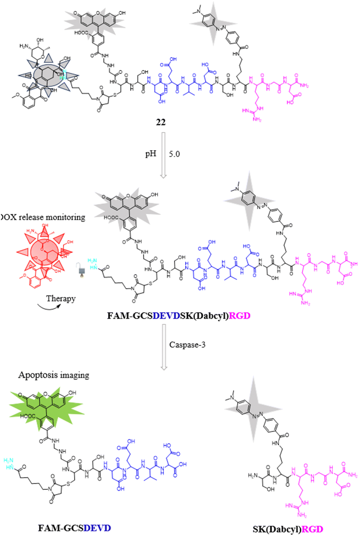 | 21 | Caspase-3 | FRET | 50 mM HEPES (pH 7.4) | 550/610, 680 | — | ∼90 min | — | HT-29 | |