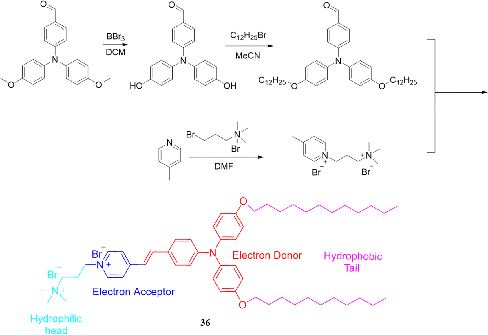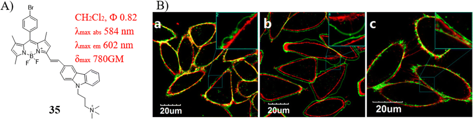 | 35 | Morphological changes of PM | — | Different solvents | 584/602(CH2Cl2) | — | — | Plasma membrane | MCF-7 cells, RAW 264.7, HeLa cells | |