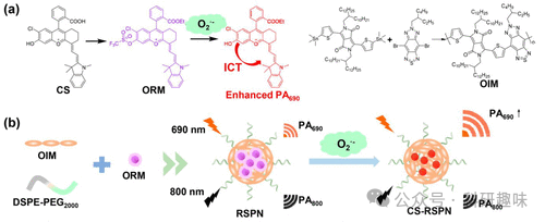 探针142具有独特的化学性质,能够与氧气发生反应,并在690纳米附近产生显著增强的光声信号。同时,其在800纳米的发射作为内部不变的参照,确保了测量的准确性和可靠性。通过比率测量法,探针142能够精确量化主动脉粥样硬化内的O2--水平,从而帮助研究人员评估易损斑块的氧化应激程度。