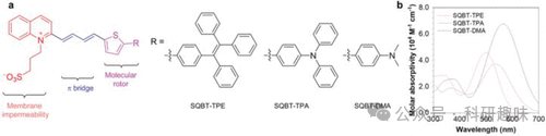 图 73.(a) 探针 145 的分子设计和制备。(b) 探针 145 在二甲基亚砜中的吸收光谱。