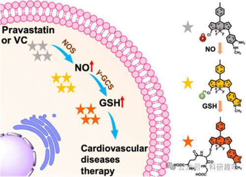 图 72.用 143 号探针监测人脐静脉内皮细胞中 NO 和 GSH 的连续生成,治疗心血管疾病。