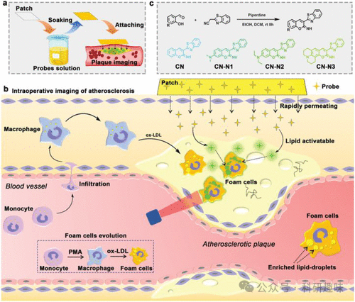 利用脂质激活探针的可见荧光生物成像技术,能够精确识别直径小至0.5毫米的斑块。这种在手术过程中对斑块进行原位术中荧光成像的开发,为未来的临床评估和图像引导下的手术干预提供了新的视角,同时也为荧光探针在斑块识别中的应用开辟了新的前景。