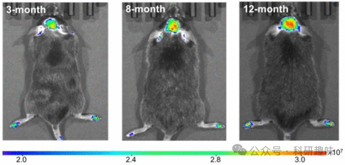 图 3.不同年龄(3、8 和 12 个月)的 AD 小鼠通过尾部注射探针 5 进行体内荧光成像,显示随着年龄的增长,大脑中 ONOO- 的浓度也在增加。