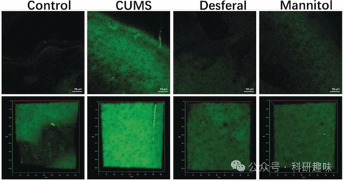 在众多内源性ROS中,羟基自由基(-OH)因其强大的氧化能力而备受关注,它能严重破坏生物大分子,加速细胞衰老,并可能诱发神经系统疾病。为了探究-OH浓度变化与抑郁症之间的联系,2019年开发了一种特异性检测-OH的探针19。该探针采用带有β-三氟甲基取代基的香豆素作为荧光团,这一取代基不仅增强了香豆素的推拉效应,还提高了其亲脂性,有助于探针穿过血脑屏障(BBB)。在羟基自由基的作用下,探针中的3-甲基吡唑酮识别单元经历单电子氧化导致吡唑酮开环,形成一个高效的ICT荧光体系,从而显著增强荧光发射。通过探针19,研究者们成功地对抑郁样行为小鼠大脑中-OH含量的增加进行了成像(图10)。这一研究结果表明,-OH可能通过抑制SIRT1的活性参与抑郁症的发病过程,进一步证明了探针19是研究-OH相关疾病的有力工具,对于深入理解抑郁症的分子机制具有重要意义。