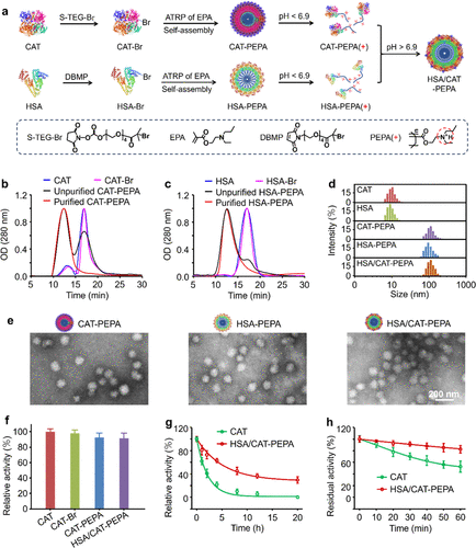 该项研究提出了一种通用的自组装策略,构建名为HSA/CAT-PEPA的纳米药物。其中: