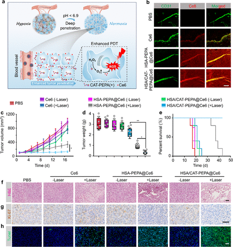 HSA/CAT-PEPA@Ce6 的肿瘤蓄积、穿透和抗肿瘤疗效的改善