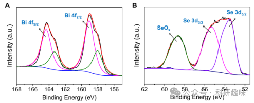 图 3. Bi 和 Se 的高分辨 XPS 图