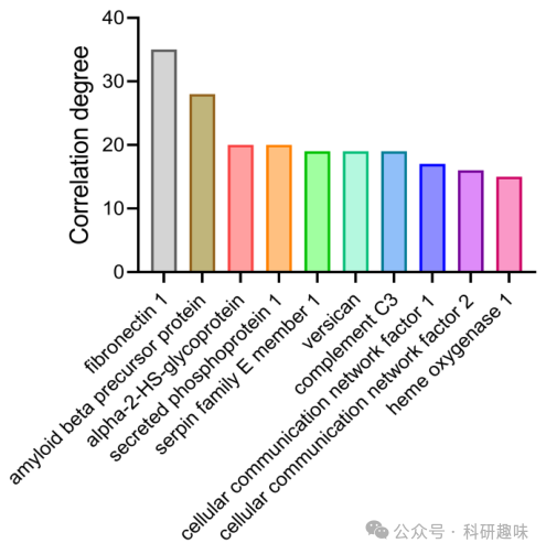 进一步,通过KEGG数据库中的差异蛋白注释,作者探讨了Mn@Bi2Se3@RGE-Exos与激光联合治疗后潜在的信号通路。补体和凝血级联、矿物质吸收以及ECM-受体相互作用通路位列前三(图 17F和G)。此外,蛋白质-蛋白质相互作用(PPI)网络分析揭示,有18种蛋白质的相关性得分超过11(图 19),凸显了它们在治疗过程中的核心作用。特别地,纤连蛋白1的PPI评估(图 17H)强调了其在免疫应答和细胞粘附中的关键作用,进一步支持了Mn@Bi2Se3@RGE-Exos治疗对补体和凝血级联、矿物质吸收以及ECM受体相互作用的显著影响,从而促进肿瘤治疗。