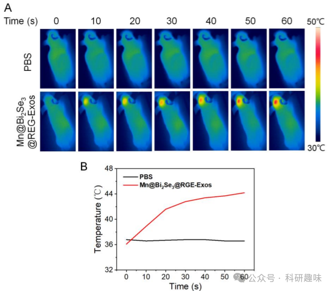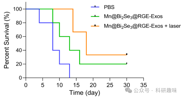 图 21. Mn@Bi2Se3@RGE-Exos 的体内治疗效果