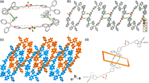 通过单晶X射线衍射分析,研究人员发现TCBF具有不对称的分子结构,TPE单元围绕中央双键核心呈螺旋桨构象。此外,TCBF分子通过C-H-π相互作用和C-H-F氢键形成了复杂的三维超分子结构,这种结构为TCBF的光物理特性提供了刚性基体。