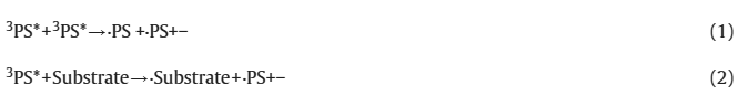 在光动力疗法(PDT)的I型机制中,处于三重激发态(T1,3PS* )的光敏剂(PS)通过质子或电子转移过程与邻近的生物分子底物(如细胞膜组分、蛋白质、脂质等)相互作用,导致自由基阴离子与自由基阳离子的生成。这些初级自由基进一步参与化学反应链,依次生成超氧阴离子自由基(O2•-,如方程式3所示)、过氧化氢(H2O2,方程式4)以及最为活跃的羟自由基(•OH,方程式5)。