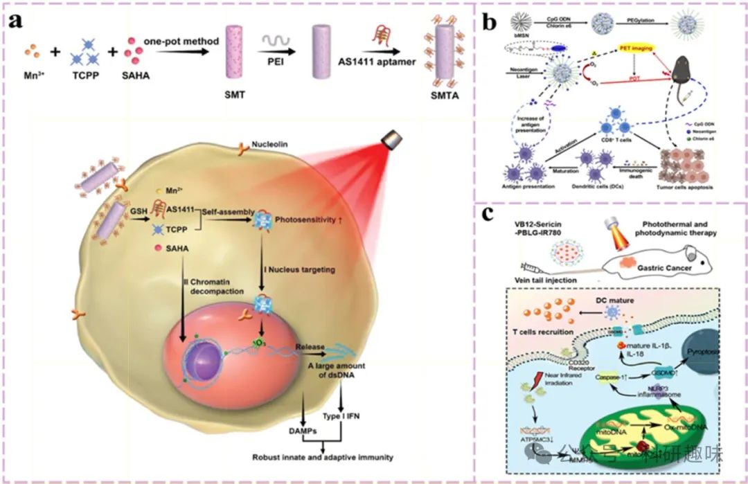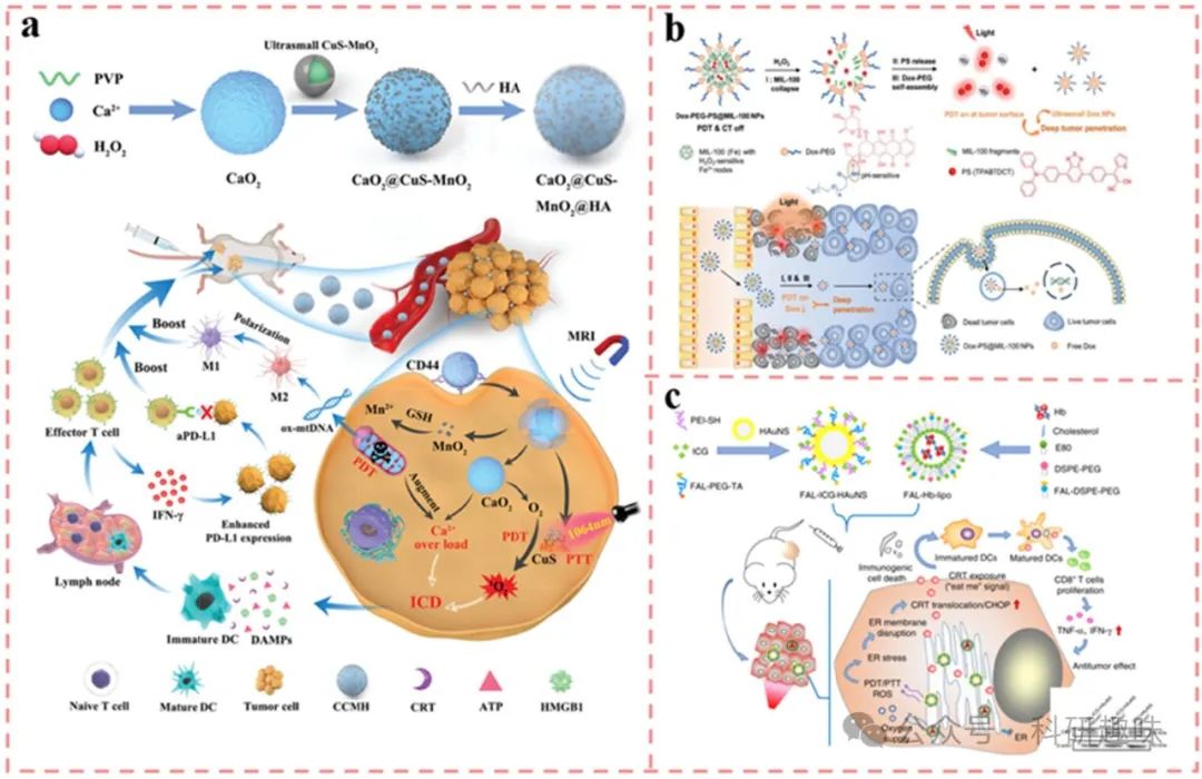 然而,传统给药方式在深入穿透致密肿瘤组织及减少正常组织毒性方面存在局限,这大大限制了PDT的临床应用前景。为此,基于多功能纳米材料的给药系统应运而生,它们不仅实现了药物释放的精准调控,还能有效促进与其他治疗手段的协同效应,成为连接PDT与免疫治疗的桥梁。