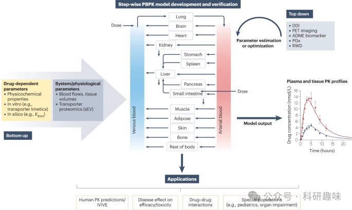 近年来,PBPK建模在特定人群中的应用取得了令人瞩目的进展,涵盖了各类疾病患者(如器官受损、非酒精性脂肪性肝炎,NASH)以及儿科和妊娠人群。在某些情况下,如癌症和NASH中,转运蛋白蛋白质组数据的增加为模型开发提供了重要支持。然而,现有儿科蛋白质组数据显示,与代谢酶相比,转运蛋白的丰度随年龄的变化相对较小。值得注意的是,目前对于肝外器官转运蛋白的发育生物学仍知之甚少,这在开发儿科PBPK模型时需特别考虑。