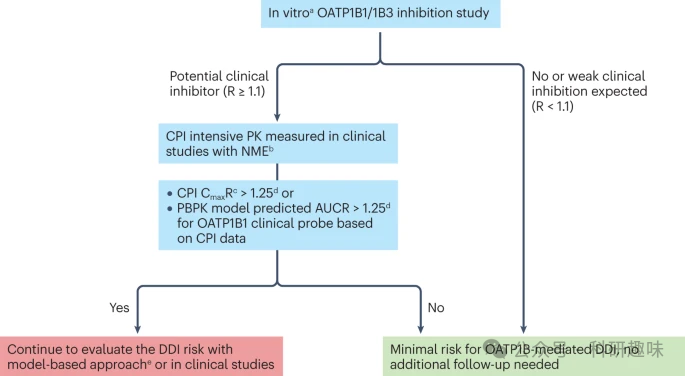 生物标志物的另一个重要用途是证明没有或只有有限的转运蛋白介导的DDI风险(图5中的决策树),从而无需进行单独的专门临床研究。目前,CPI已被认为是为此目的进行了验证的唯一一级生物标志物(补充表S1a)。随着我们对转运蛋白介导的DDI的深入了解,以及新生物标志物的发现与验证,未来的药物开发将更加高效和安全。