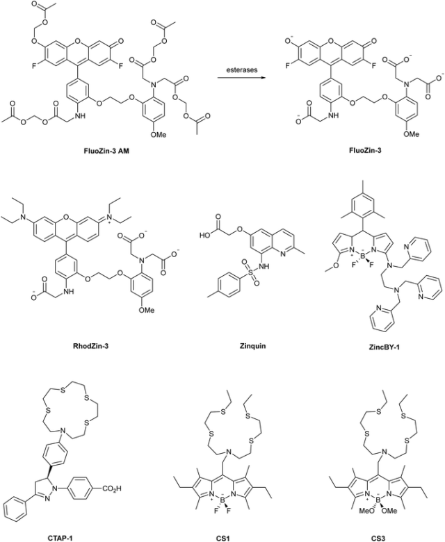 图 6 用 XFM 成像技术对细胞中的锌和铜进行成像的金属响应型荧光探针的部分实例。