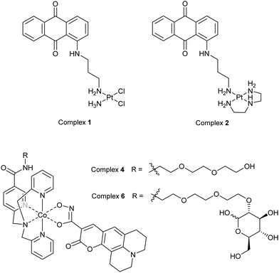 图 8 用于 OFM 和 XFM 多模态成像的含铂或钴的荧光标记治疗剂或类似物示例。