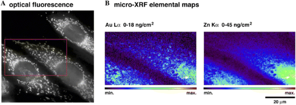 纳米颗粒作为成像剂、诊断学和治疗学的组成部分具有很大的潜力,但人们对其与生物系统的相互作用还不甚了解。纳米颗粒的一个优点是它们通常含有钛或金等非本地元素,XFM 可以很容易地检测到这些元素,从而深入了解它们在生物样本中的作用。将荧光标记与 XFM 结合使用,可以了解这些类型化合物的定位情况。