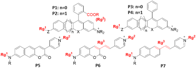 作者介绍了两类常见的氧杂蒽类衍生物,一类是邻羧基取代的氧杂蒽类衍生物,一类是没有羧基,只有苯基取代的氧杂蒽类衍生物,但是调整这两类的取代物波长的方式大同小异,分别是氨基的调整、中心原子的调整及共轭长度的调整。