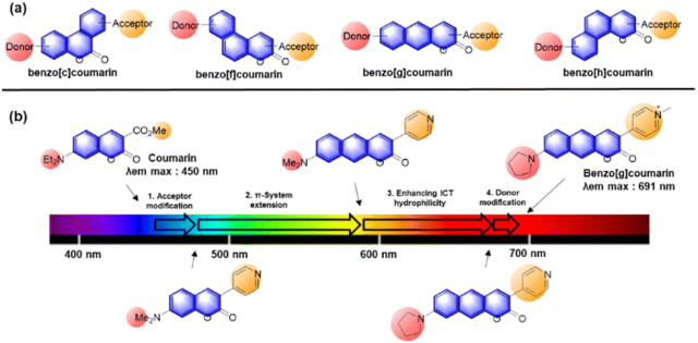 Dai, M.; Yang, Y. J.; Sarkar, S.; Ahn, K. H. Strategies to Convert Organic Fluorophores into Red/near-Infrared Emitting Analogues and Their Utilization in Bioimaging Probes. Chem. Soc. Rev. 2023, 52 (18), 6344–6358. https://doi.org/10.1039/D3CS00475A.
