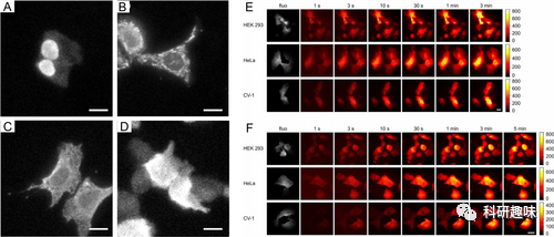 与荧光成像相比,分子光成像在宏观或中观尺度成像方面具有一定的优势,因为它具有较高的信噪比(SBR)。分子光成像的优势在于其信号与背景的比例更高,使得目标更为清晰可见。然而,分子光成像的一个挑战是产生的光通量较低,这在显微成像中限制了其应用。 图8. 细胞的生物光显微成像