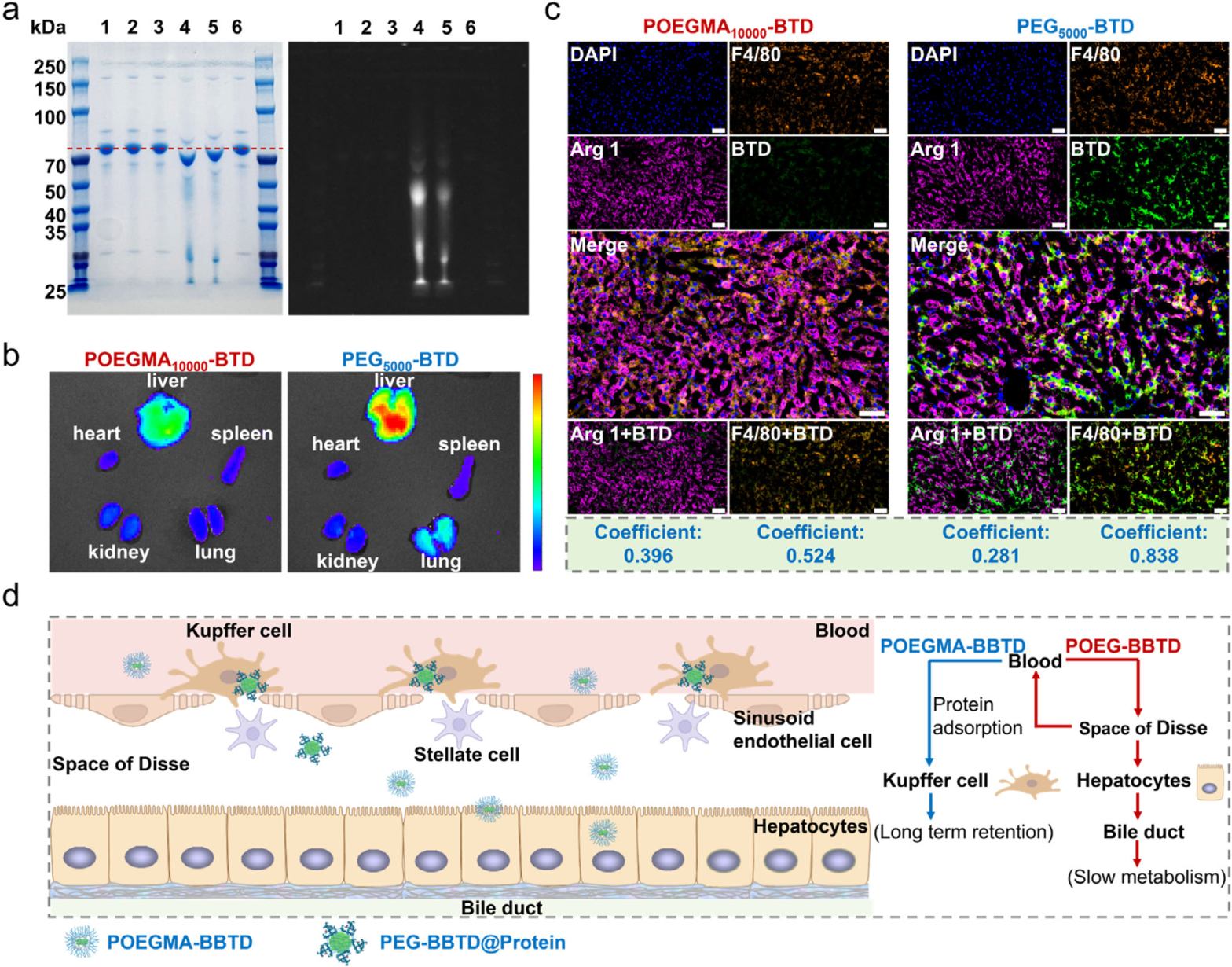 “刷子”浓密的“刷毛”不仅能阻止自身团聚,还能非常有效地抵抗血液中蛋白的吸附 。这相当于给探针穿上了一件完美的“隐身衣”,让它能够成功躲过肝脏等免疫器官的“雷达扫描”和清除 。