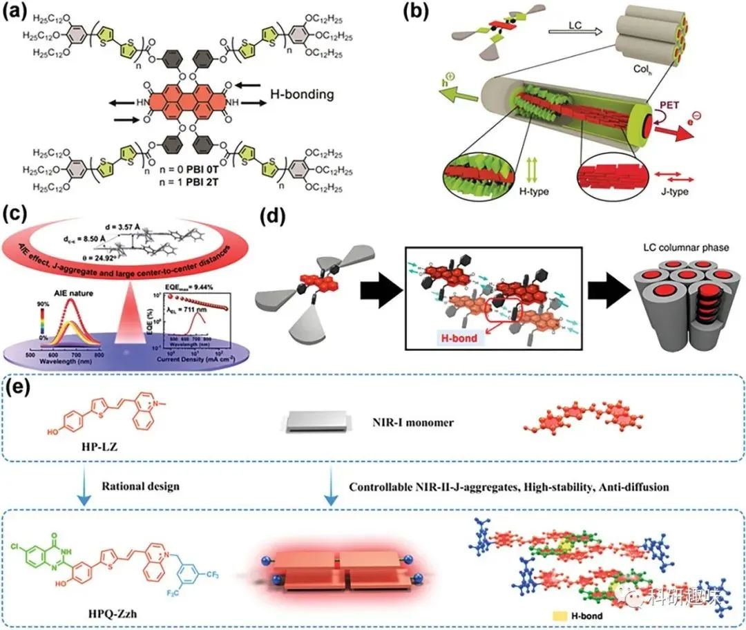 在过去的几十年里,人们对氢键的研究已经非常深入了,作为一种空前结构的调控手段,氢键能够很好的帮助分子形成J-聚集体,此外,氢键在优化有机光学功能分子的化学特性和光物理性能方面也起着至关重要的作用。特别是,分子间氢键的存在可以促使分子形成有序排列。