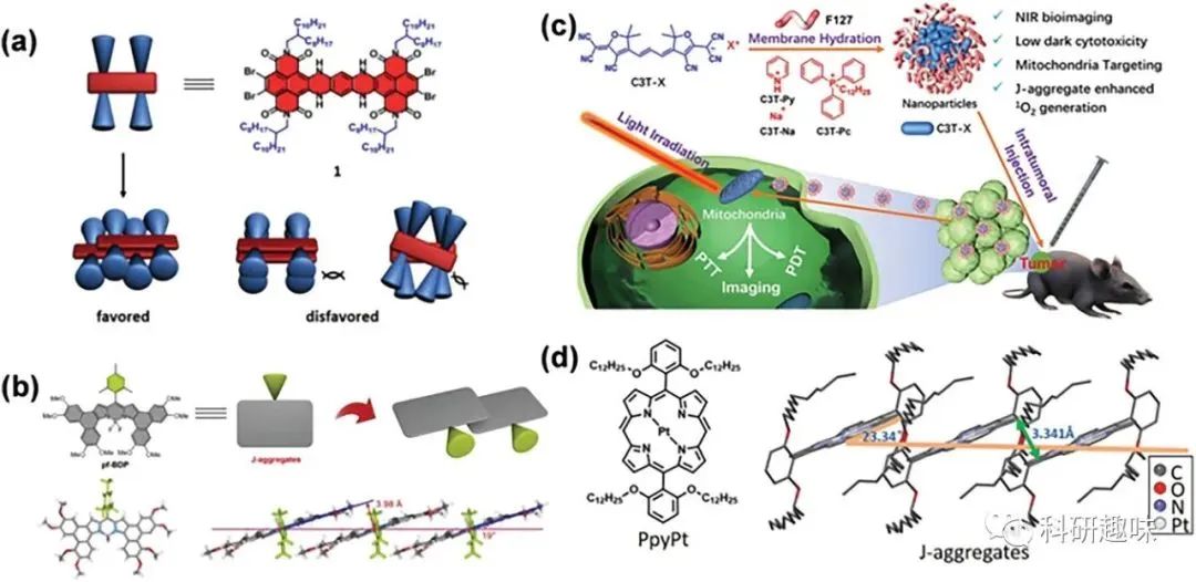 J-聚集体的形成通常需要分子结构的有序排列。然而,面对面排列的H-聚合比尾-头堆叠更容易形成。为了构建稳定的J-聚集荧光体,我们需要对有序组装结构进行分子调控,以制造头-尾堆叠。