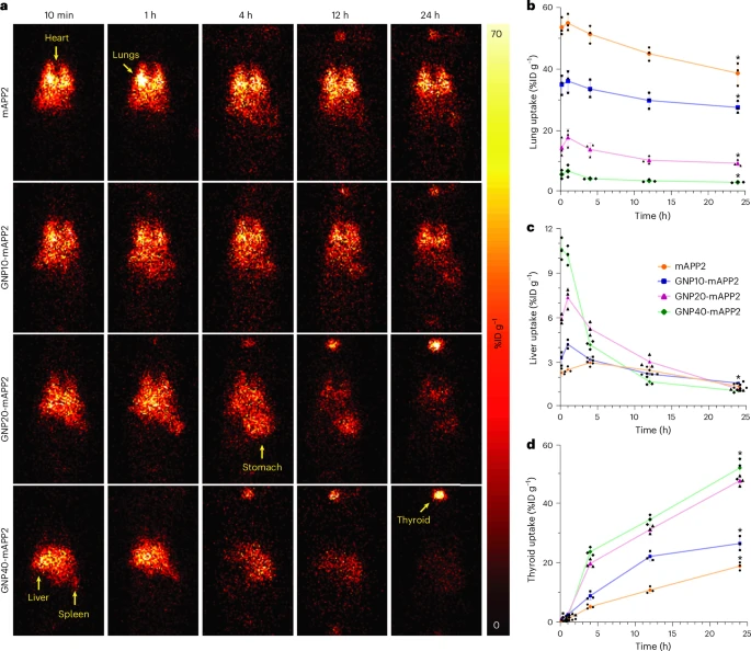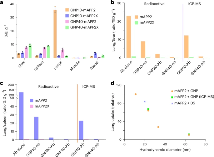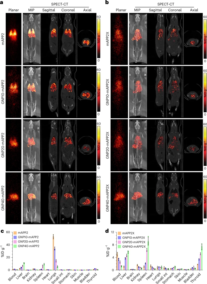 通过SPECT-CT成像和生物分布分析,研究人员量化地证实了纳米粒子在肺部的浓聚能力远超过其他器官,包括网状内皮系统。
