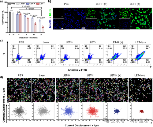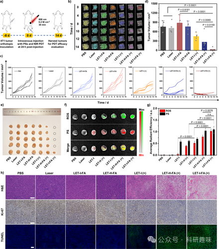 图4. 体外 PDT 疗效研究人员利用多模态成像技术,包括荧光成像和光声学成像,来追踪LET-I探针在体内的行为,并验证了其在肿瘤微环境中的特异性激活。