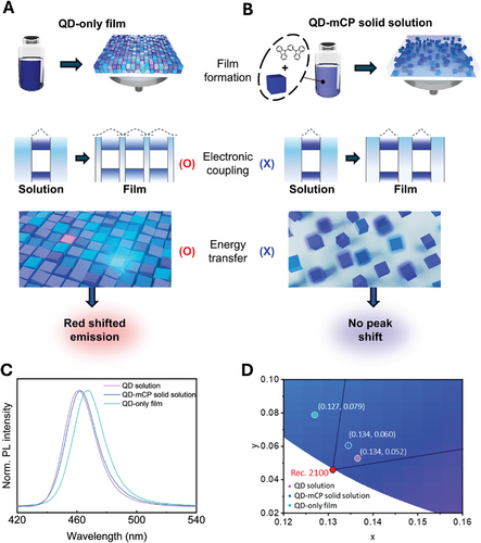 图1. 从 QD-mCP 固溶体中提取深蓝色发射光谱