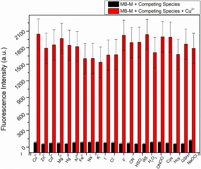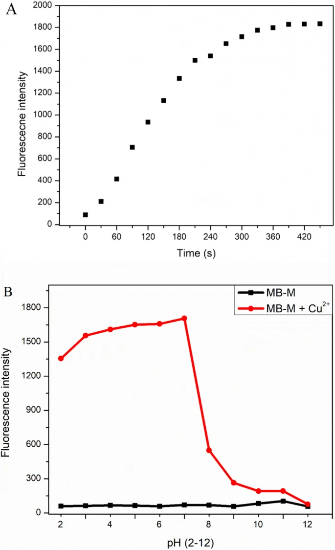 MB-M探针展现了在广泛的pH范围内对铜离子的高选择性和快速响应时间(5分钟)。
