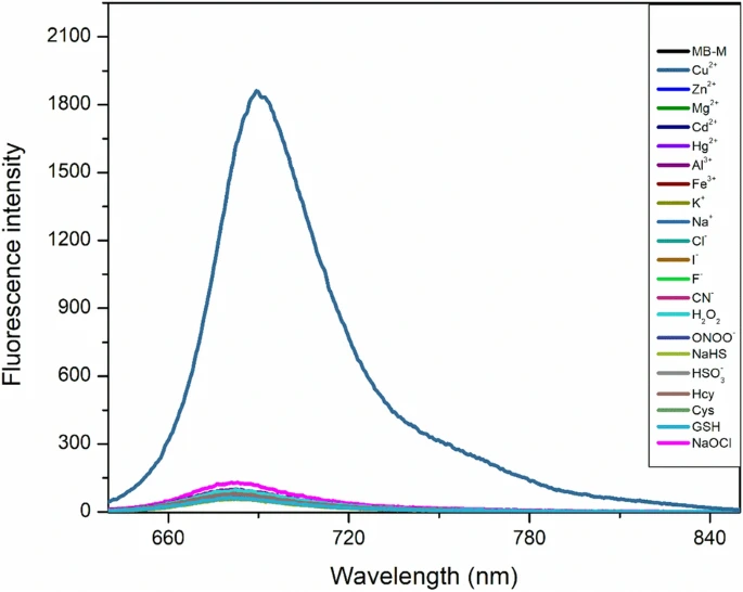 MB-M探针对铜离子的检测依赖于其在NIR区域的荧光响应,该响应是通过铜离子促进的酰胺键水解实现的。