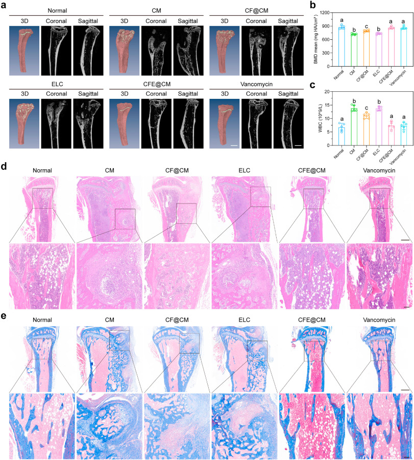 图5. CFE@CM 纳米细胞对体内骨髓炎的疗效