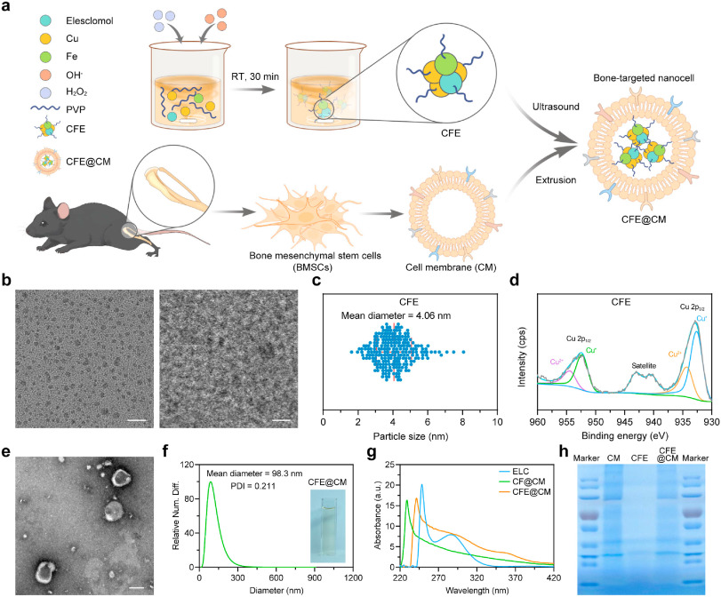 图 1. BMSC 膜构建的 CFE@CM 纳米材料的合成与表征。