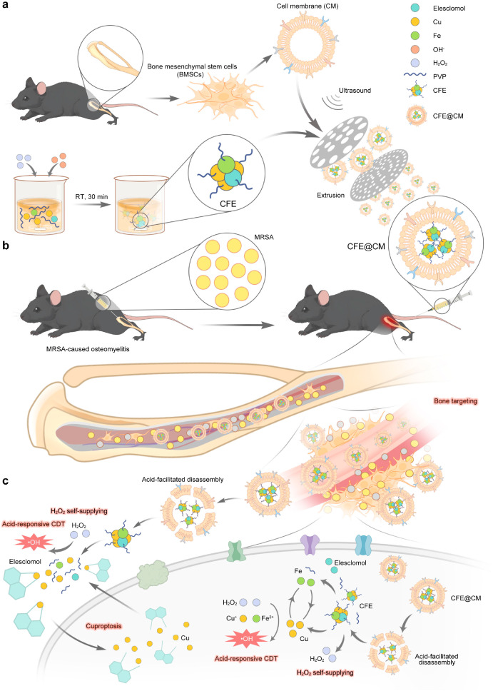 【Biomaterials】不仅pH响应,还能增强Fenton反应、促进铜死亡,这款仿生纳米材料能够有效缓解骨髓炎