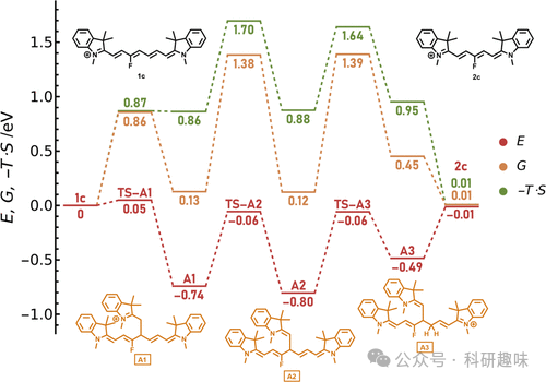 - • 量子化学计算揭示了热缩短反应的能量概貌,包括反应前体、过渡态和产物的能量变化,以及反应路径上的关键步骤。