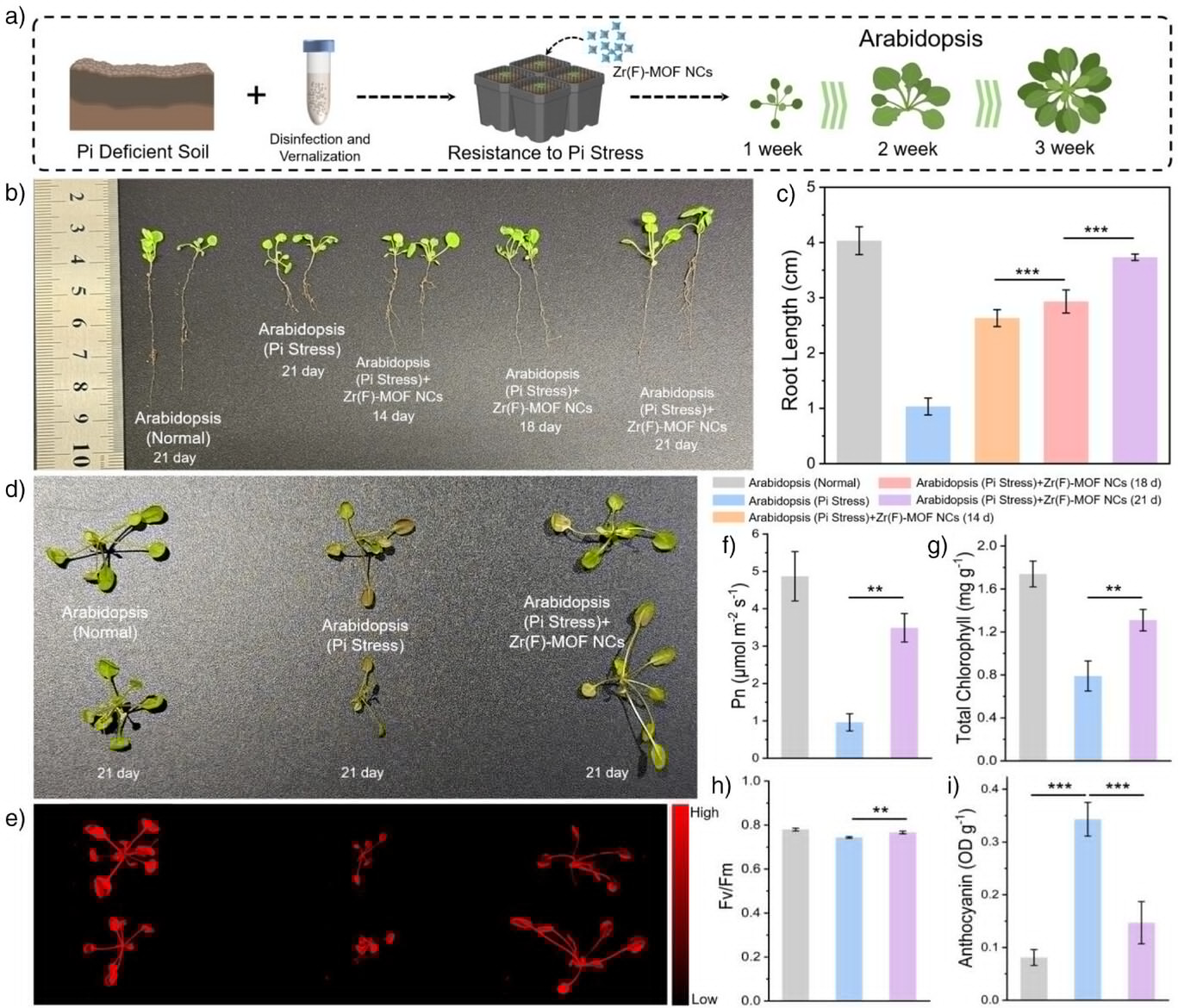 在拟南芥和绿豆模型中,Zr(F)-MOF显著缓解了低磷胁迫: