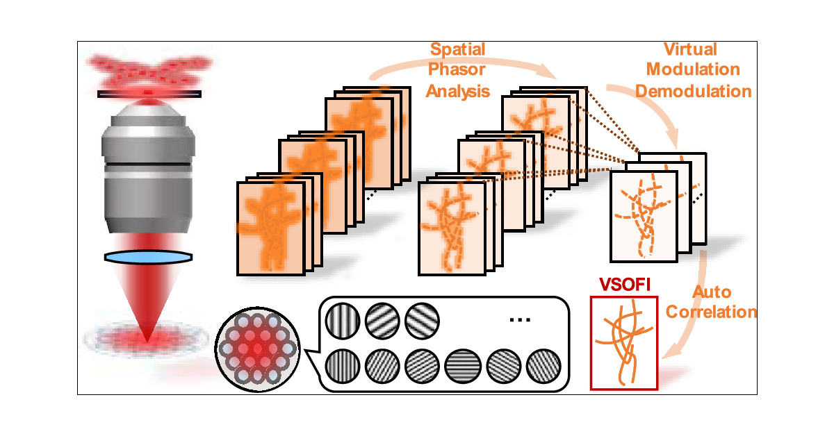 超分辨率荧光成像面临帧数多、速度慢的挑战。 提出的VSOFI方法结合了虚拟调制和迭代解调,仅需20帧即可实现2倍侧向分辨率提升,成像效率提高了25倍。这使得在大视野内实时观察活细胞细微结构变得更加可行。