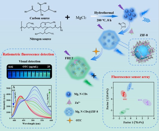 【Chemical Engineering Science】Visible ratiometric fluorescence sensor based on Mg, N-CDs@ZIF-8 for sensitive detection of oxytetracycline and discrimination of tetracycline antibiotics