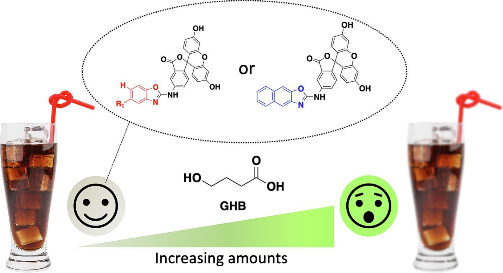 Gaviña利用掺有荧光素的 2-aminonaphtoxazole 和 benzoxazole 类化合物,构建了一种基于纤维素纸的检测系统。 在荧光增强机制的作用下,该系统在水中检测伽马--羟丁酸的动态范围为 0 至 125 mM,LOD为 7.3 mM,最重要的是,该系统不含溶剂残留物,具有生态友好的特性。
