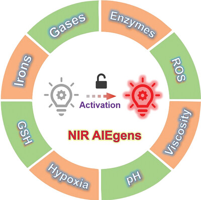 Tang等人概述了用于内部刺激激活的疾病诊断和治疗的近红外 AIEgens 的研究进展。 根据刺激类型的分类,用具有代表性的实例说明了响应式近红外 AIEgens 的设计原则及其生物医学应用。 最后,简要讨论了可激活的近红外 AIEgens 在疾病照片治疗学领域面临的挑战、机遇和未来前景。