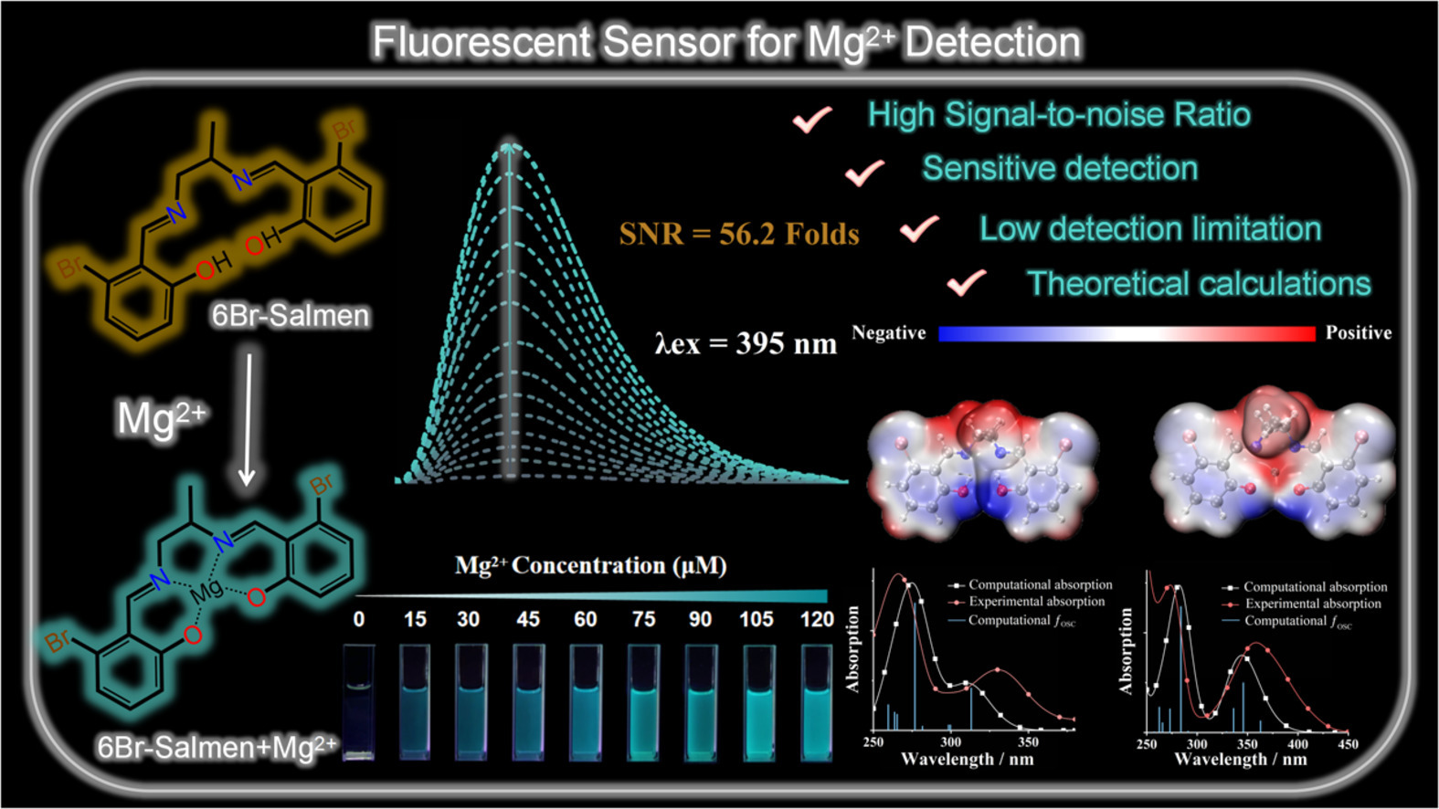 Wu等人报道了一种基于希夫碱的Mg2+荧光探针,该探针具备较高的信噪比 (SNR)和较低的检测限(5.84 × 10-6 μM),同时具有优异的稳定性和抗干扰性能。