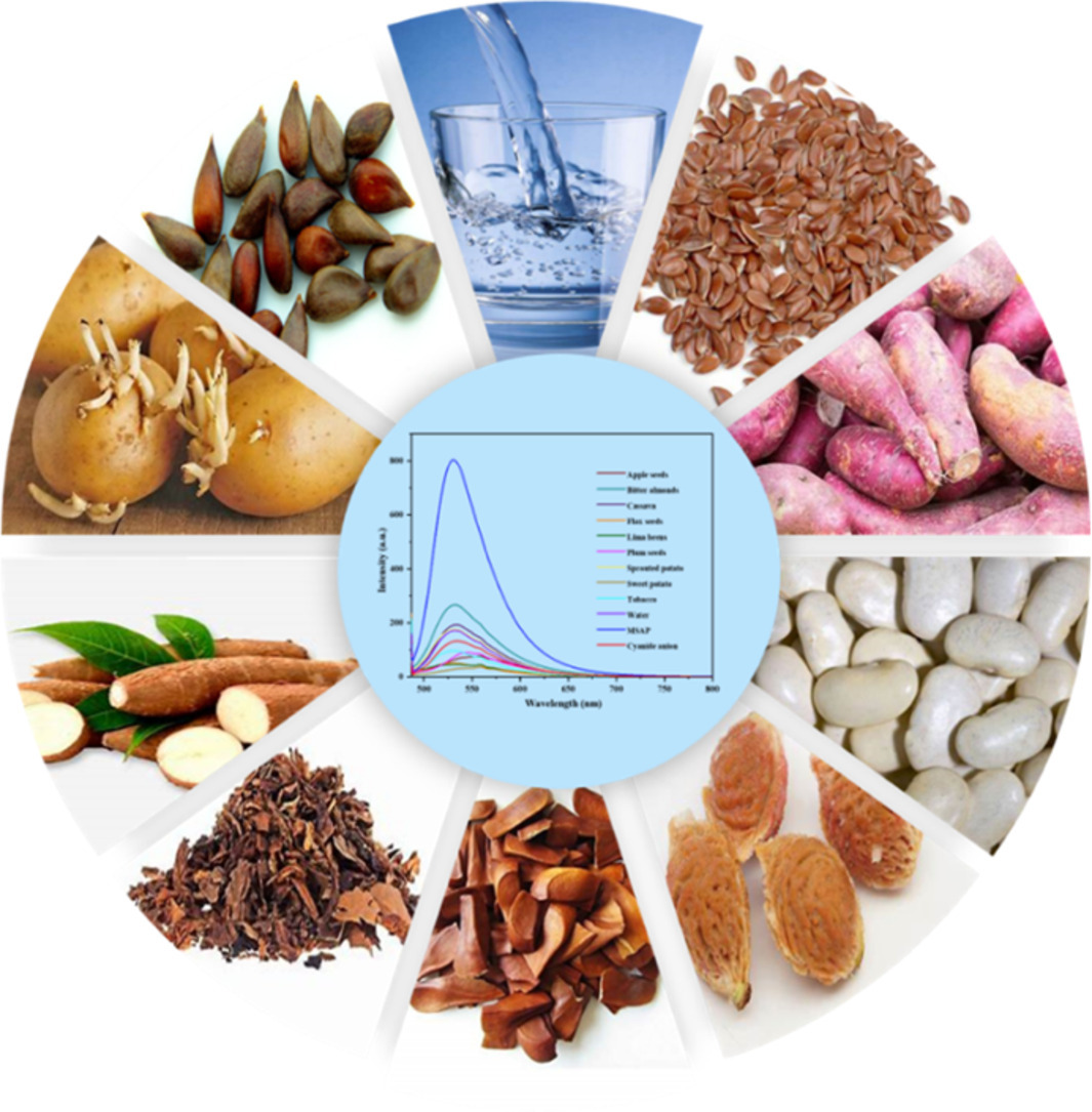 Assiri等人开发了一种高性能CN-荧光探针 MSAP,其检测限约为 2.8 μM,远低于世界卫生组织可接受的阈值水平,并且,探针 MSAP 可以被用于分析各种食品样品中CN-的存在。
