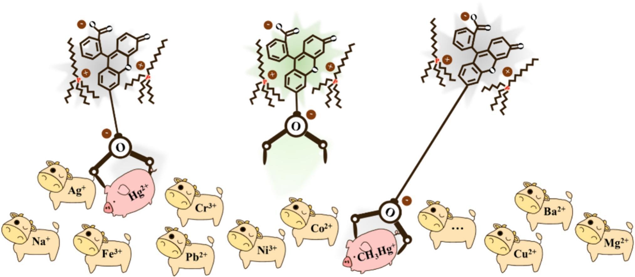 She等人利用荧光素基离子液体(ILs)制作了一种新型Hg2+荧光探针,对 Hg2+ 和 CH3Hg+的灵敏度分别为 0.4 和 60 nM。 此外,当 Hg2+ 和 CH3Hg+的浓度分别为 0.1 和 1 μM 时,该新型探针可实现肉眼可视和及时检测。 该探针还能克服潜在离子和常见有机配体的干扰,检测绿茶和白酒等真实食品样品中的 Hg2+ 和 CH3Hg+。