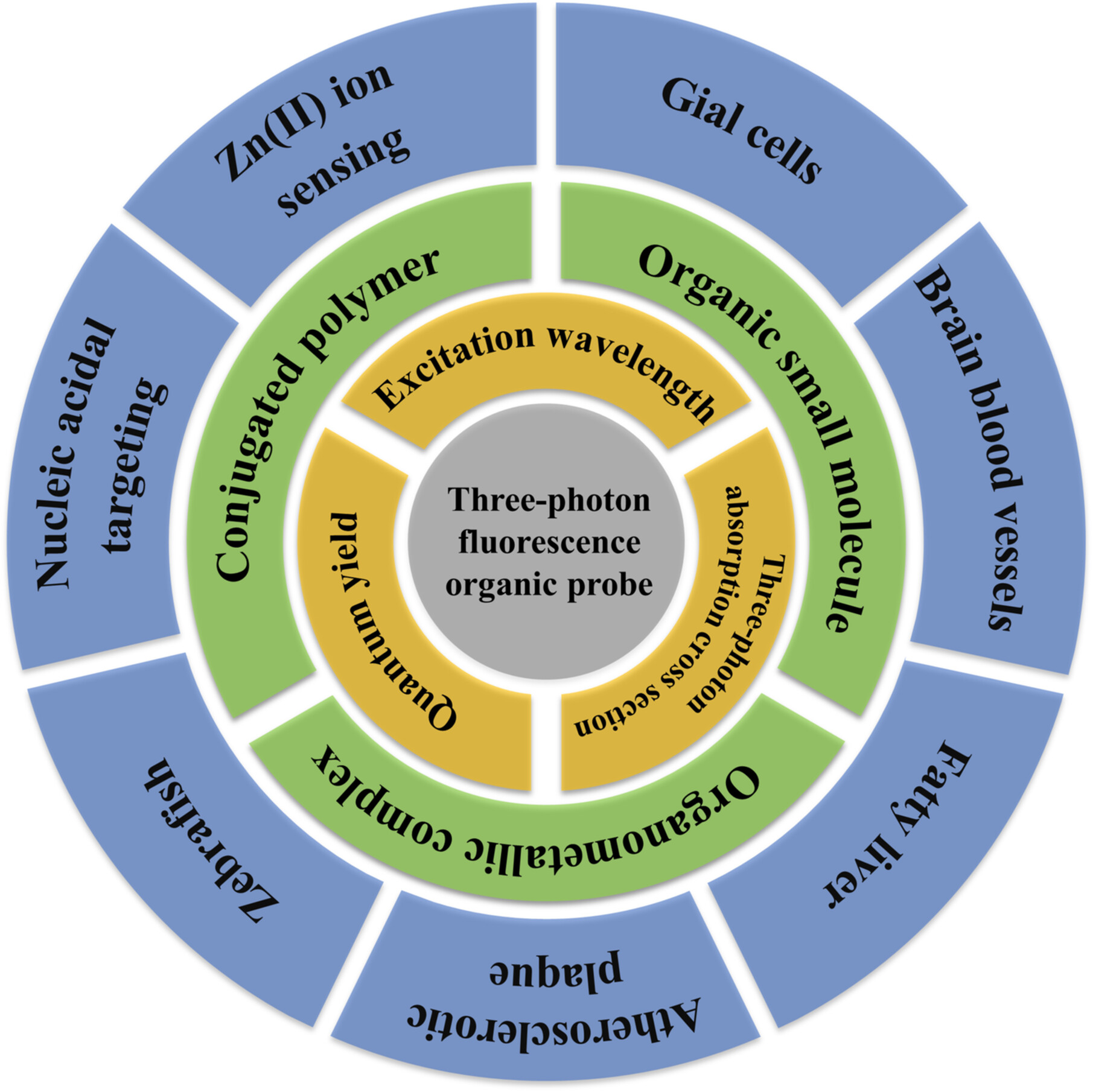 Li等人介绍了 3PF 成像的基本原理,并强调了 3PF 生物成像的优势。此外,还根据相对光学指数总结了这些有机 3PF 探针的分子设计。此外,还详细列举了不同的 3PF 成像应用场景。最后,提出并讨论了 3PF 精确成像所面临的主要挑战、探针开发的意义以及有机探针的发展前景,以促进未来的应用和临床转化。