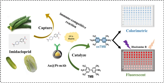 Zhai, R.; Chen, G.; Liu, B.; Liu, G.; Zhang, X.; Liu, J.; Xu, X.; Zhang, Y.; Wang, J.; Jin, M.; Xu, D. Kill Two Birds with One Stone: Colorimetric/Fluorescence Immunosensor Based on Au@Pt Nanozyme for Sensitive Detection of Imidacloprid. Microchim Acta 2024, 191 (10), 637. https://doi.org/10.1007/s00604-024-06718-1.