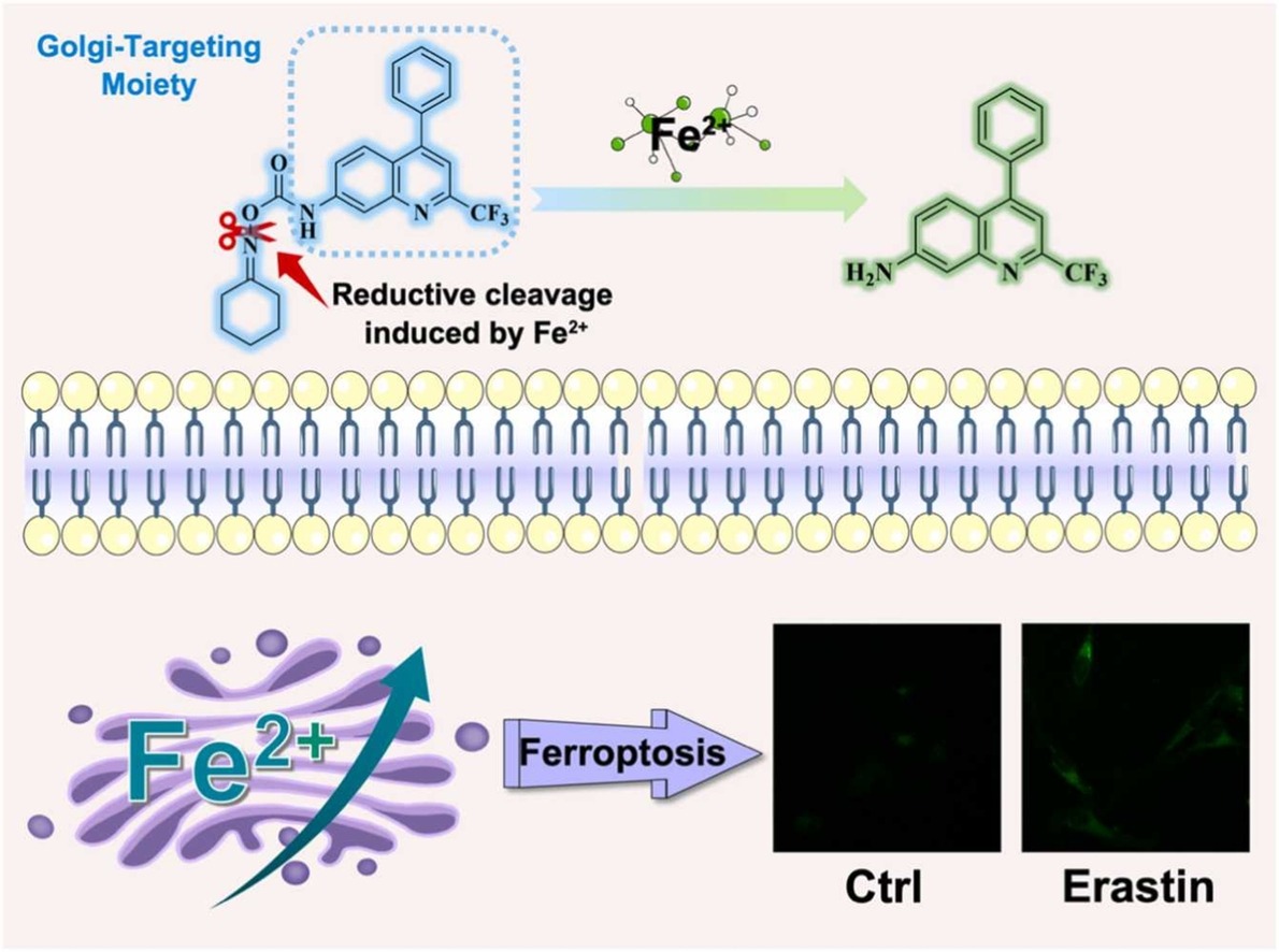 Yan, T.; Sheng, W.; Liu, C.; Cai, X.; Wang, Y.; Liu, X.; Wang, K.; Rong, X.; Fu, T.; Zhu, B. Visualization of Labile Fe2+ within the Golgi Apparatus during Ferroptosis Using a Novel Highly Specific Fluorescent Probe. Sensors and Actuators B: Chemical 2024, 136714. https://doi.org/10.1016/j.snb.2024.136714.